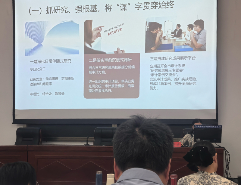 在培训交流环节,厦门市审计局代表以“聚焦科学规范,系统提升效能”为主题,详细介绍了开展“科学规范提升年”行动的实践与思考,分享了在构建科学高效的审计计划与管理体系、优化审计现场实施流程、健全审计质量分级管控与复核审理机制等方面的积极探索与初步成效。厦门市审计局深入开展“科学规范提升年”行动的相关举措获得了省厅领导及与会同行的认可。