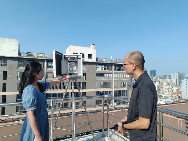 图为审计人员现场查看大气超级站相关设备运行情况。